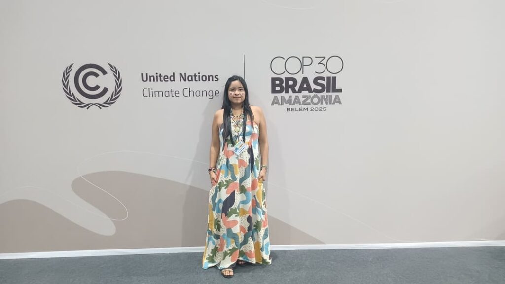 Taily de Faria, indígena brasileña del pueblo terena, asistió a la cumbre climática de Belém do Pará, realizada del 10 al 22 de noviembre. Foto: Emilio Godoy