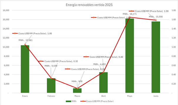 En un informe oficial del OC respecto a la situación del curtailment entre los meses enero y junio 2025, la energía renovable vertida en el mes de mayo alcanzó los 16,171 megavatios por hora (MWh), lo que es un promedio del 18% de la energía total, mientras que en enero, se registró un promedio del 21% de desperdicio.